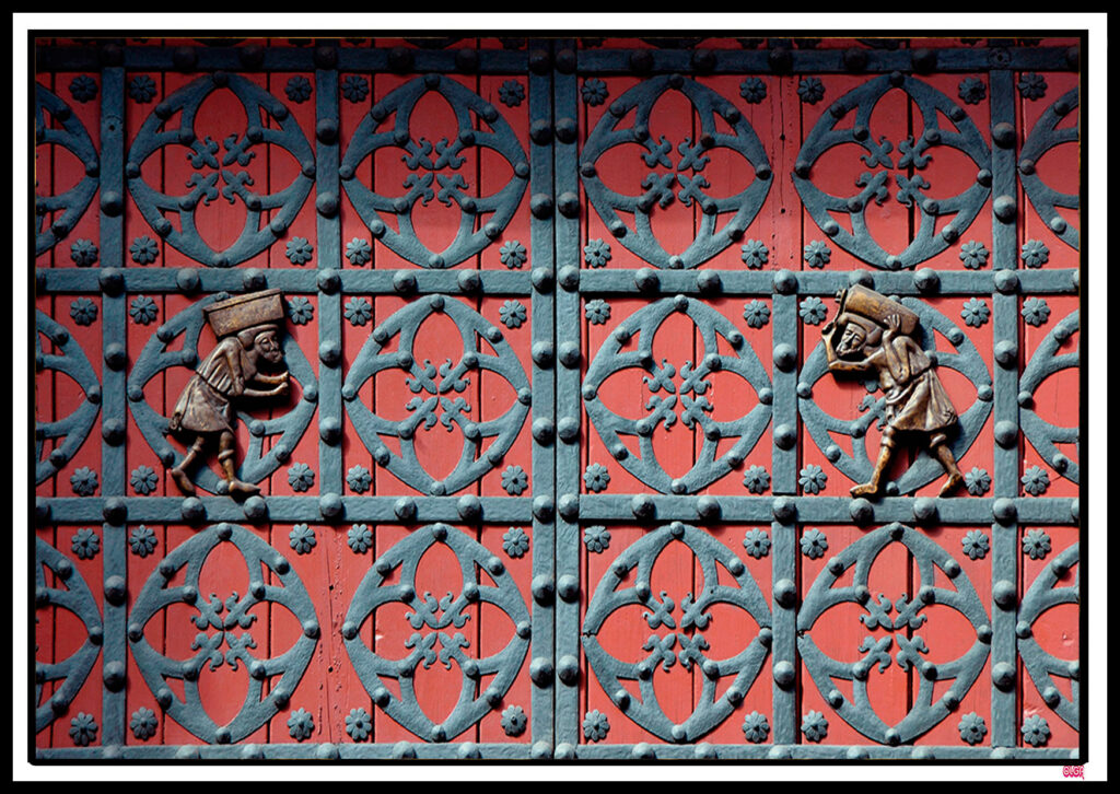 Como ya he mencionado antes, hubo dos formas de colaborar en la construcción de la basílica: los más ricos, mercaderes y armadores, pusieron dinero, y los más pobres, los estibadores del puerto conocidos como los «bastaixos», pusieron la mano de obra, moviendo los pesados bloques de piedra desde la cantera de la montaña de Montjuïc hasta el barrio de la Ribera, esto era considerado como un acto de fe. Esto lo hicieron compaginando la carga y descarga de los barcos comerciales, sin que la actividad comercial se viese afectada en ningún momento. Posteriormente, esa colaboración desinteresada se les reconoció con la concesión de algunos privilegios respecto a otros gremios. Los Bastaixos eran un gremio respetadísimo, hasta tal punto que en la puerta principal si te fijas en la parte inferior, se pueden ver dos figuras de hombres, repujados en bronce, cargando enormes piedras sobre sus espaldas, estos son los bastaixos. Es el único templo que dedica un lugar de honor en su entrada a los obreros que la levantaron.